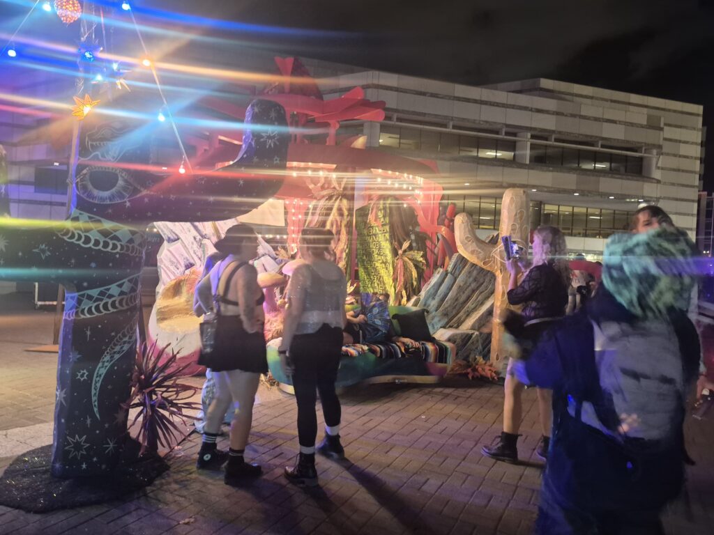 Across the festival, creativity unfolded in every direction. Local artists—including glassblower Ash Cherrybomb Glass, beloved for her vibrant, hand-sculpted pieces—added depth and craft to the cultural landscape. Art installations glowed between stages, from floating visuals to immersive lounges where guests could slow down and soak in the scenery.